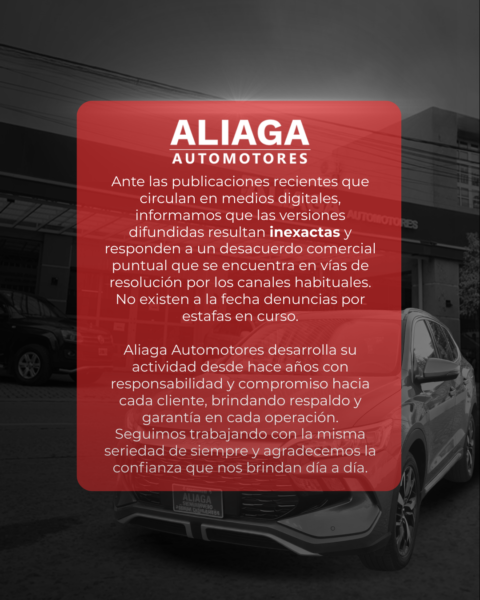 Aliaga Automotores aclara versiones difundidas en medios digitales